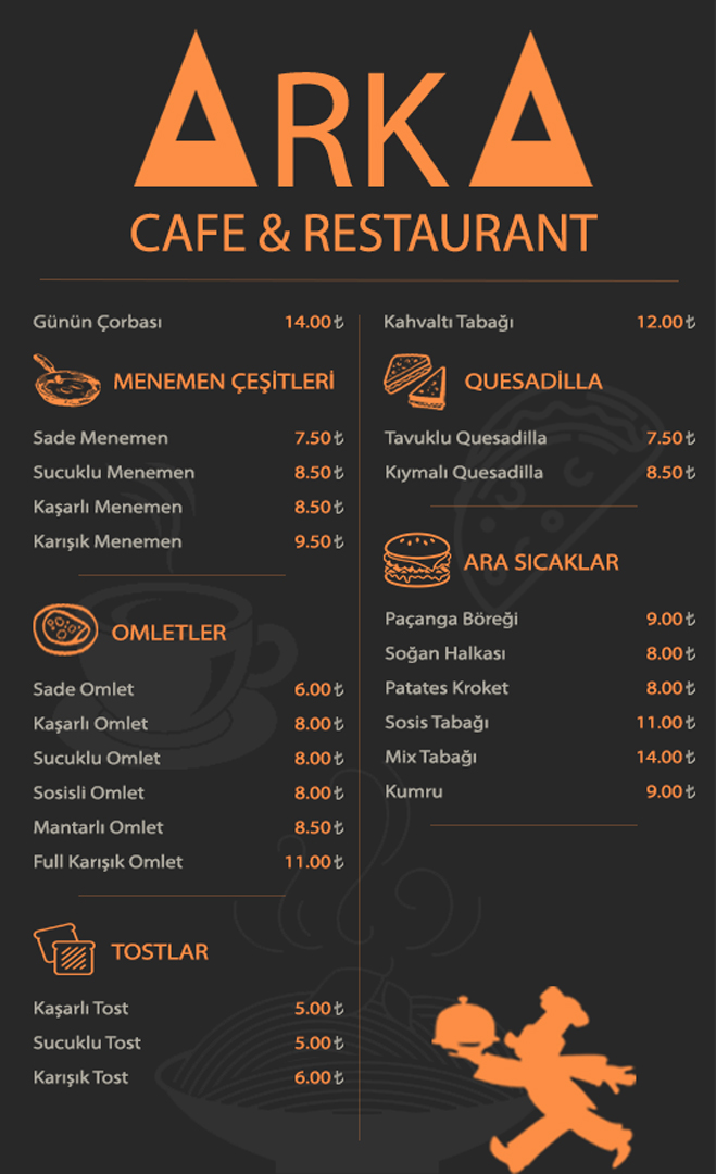 Neyse şimdi konumuz bu değil. Neler yaptık Arka için onlara geçelim. Logosunu ve menü tasarımlarını yaptık. Logoyu zaten görüyorsunuz, menüleri de şöyle ekleyeyim